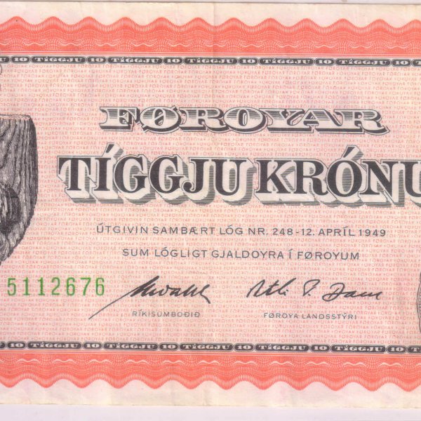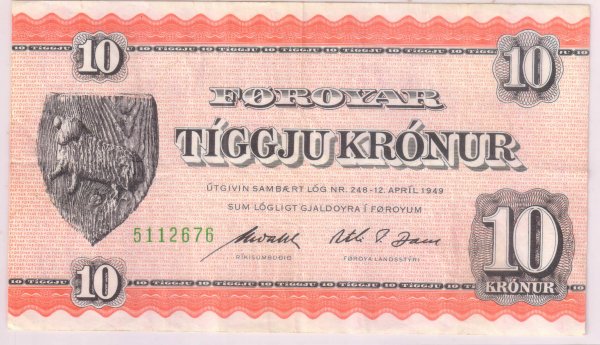 FAEROE ISLANDS – 10 kronur 1949 used currency note