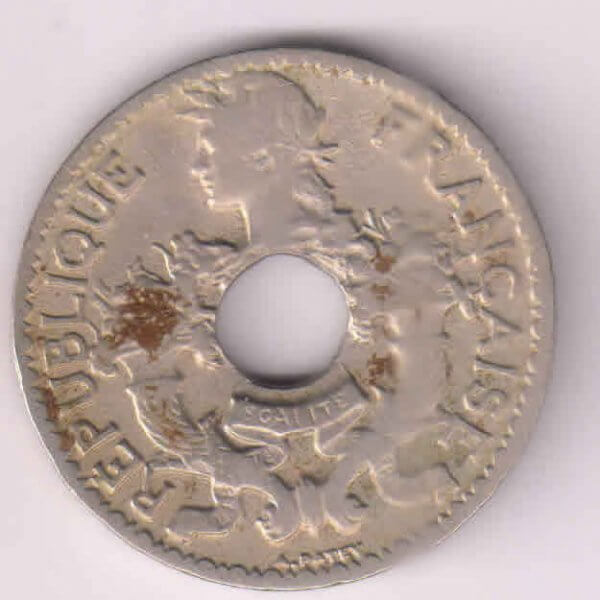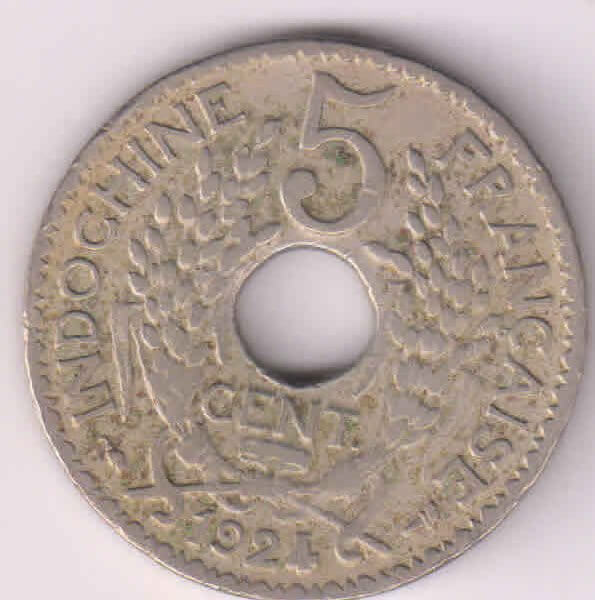 French Indo China – 5 cents 1924 KM 18.1 5 gms cn holed coin