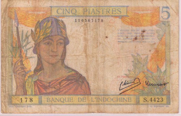 French indo China – 5 piastres 1932 – 49 , used currency note