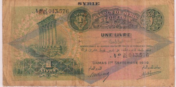 | Issuing bank | Bank of Syria and Lebanon (بنك سوريا ولبنان) |