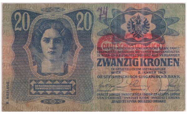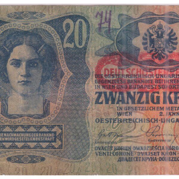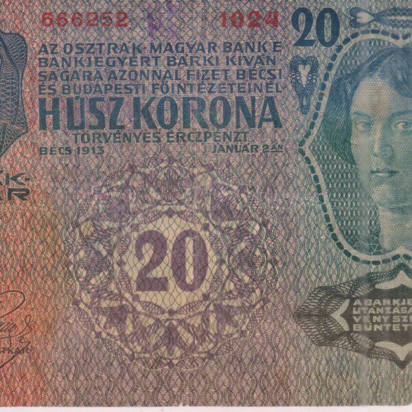 German occupied Austro Hungary – 20 kroner 1913 vf currency note