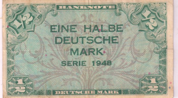 Germany – Allied Military ,1/2 dm 1948 vf currency note