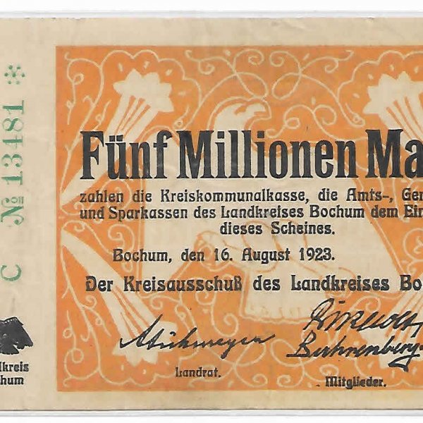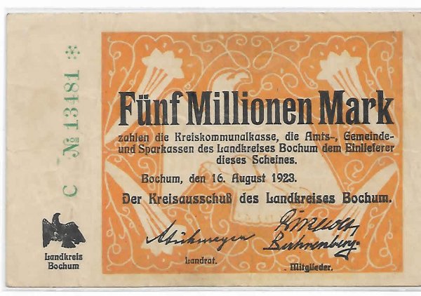 Germany City of Bochum (Prussian province of Westphalia) 5 000 000 mark 1923