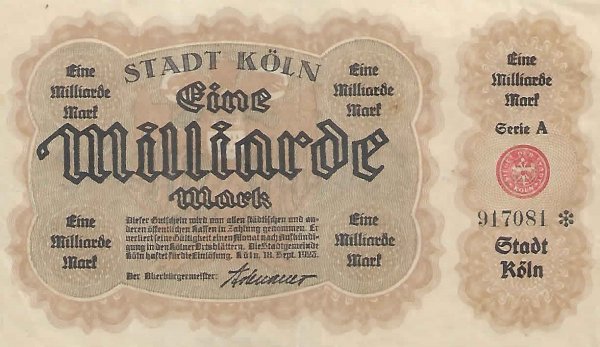 Germany / City of Cologne (notgeld) (Prussian province of Rhine) 1 000 000 marks 1923 vf currency note