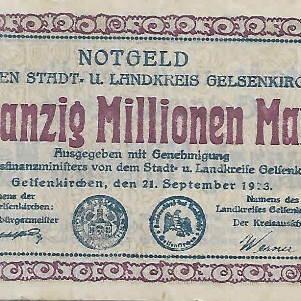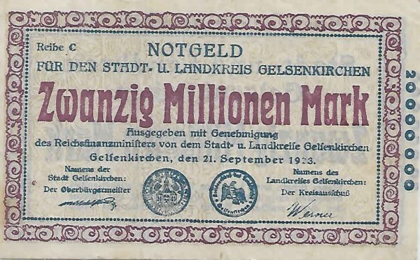 Germany / City of Gelsenkirchen 20 000 000 mark 1923 vf currency note