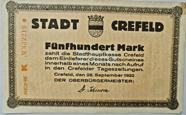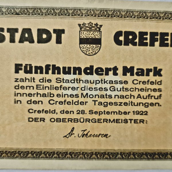 | Issuer | City of Krefeld (Prussian province of Rhine) |
