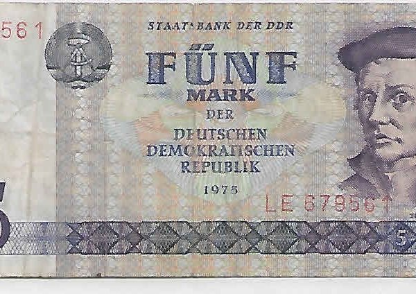 Germany Democratic rep. – 5 mark 1975 used currency note