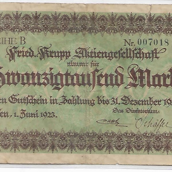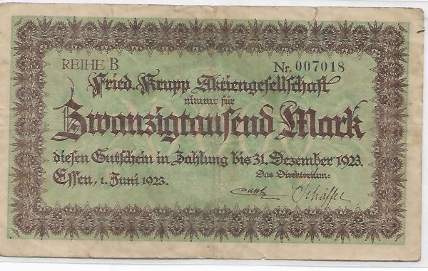 Germany Essen / fried Krupp 20 000 mark 1923 vf currency note