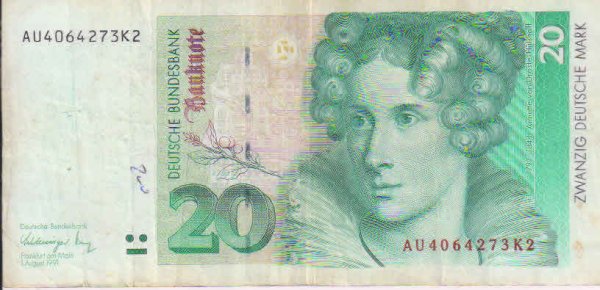 Germany, Federal Republic of 20 Deutsche Mark 1991 vf currency note