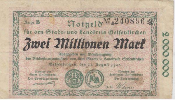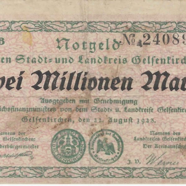 Germany / Gelsenkirchen notgeld – 2000 000 mark 1923 vf currency note