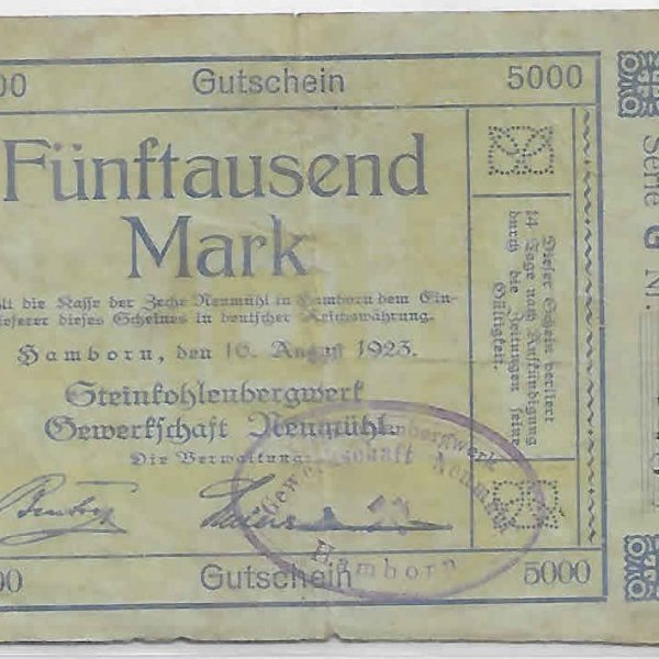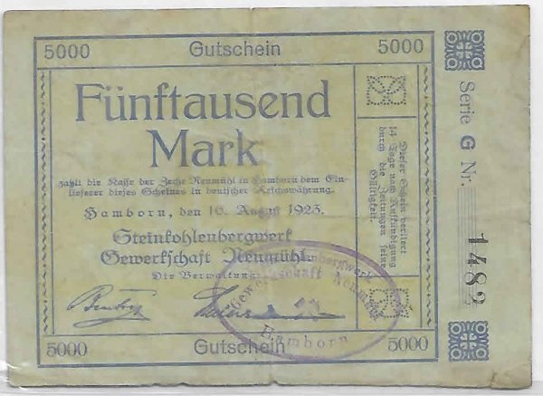 Germany Hamborn notgeld 5000 mark 1923 vf currency note
