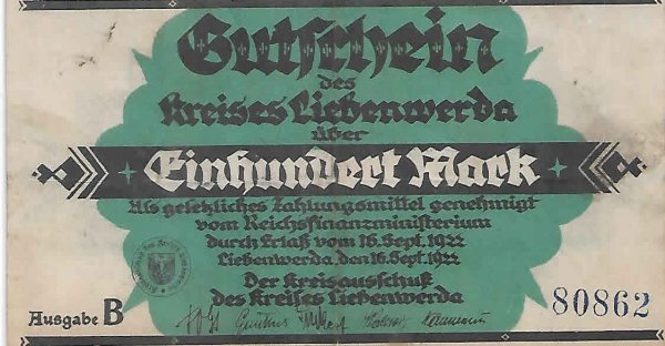 Germany Liebenwerda notgeld 10 million 1922 vf currency note quantity