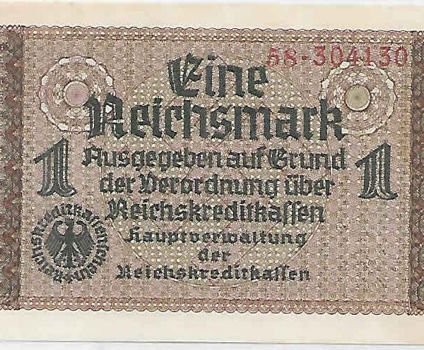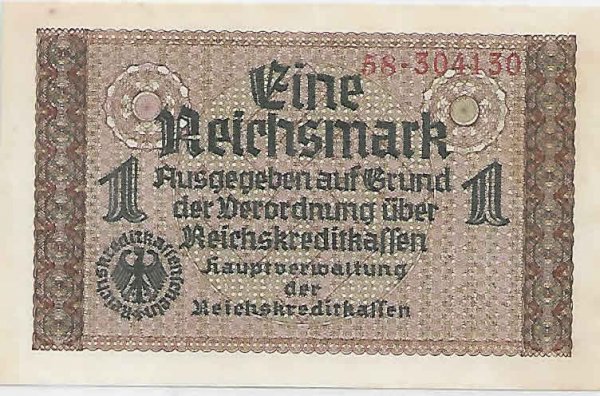 Germany – occupied territories WW II 1 reich mark scarce currency note
