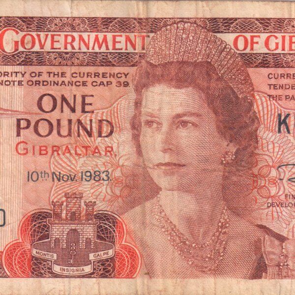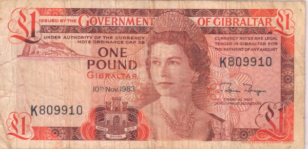 Gibraltar 10 pounds 1974 - 83 vf currency note quantity