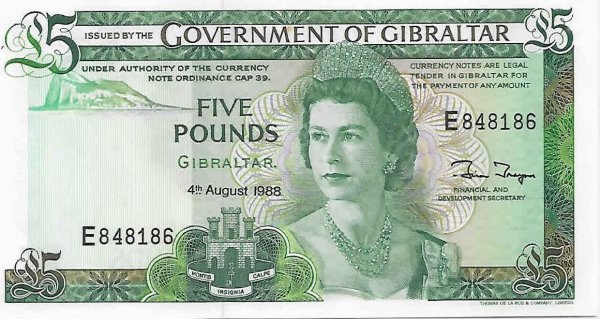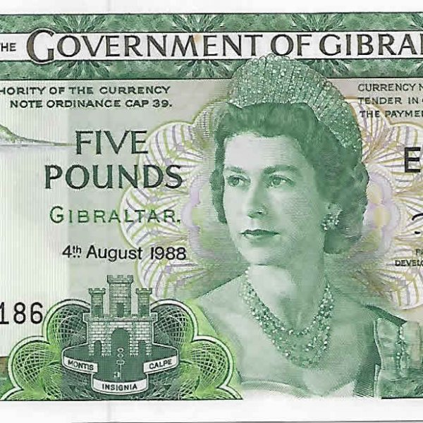 Gibraltar – 5 pounds 1988 unc currency note