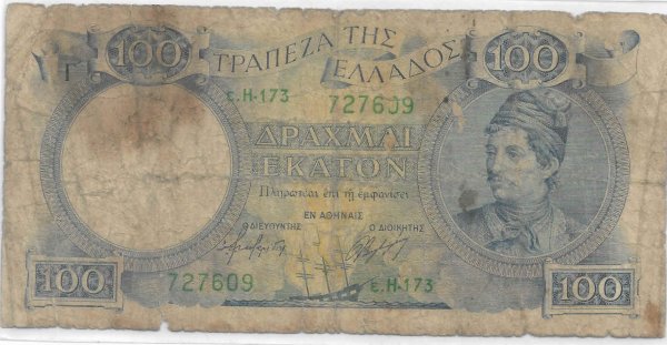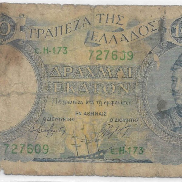 Crete Island – 25 Drachmas 1901 – 15 vf scarce currency note w/hole in the center