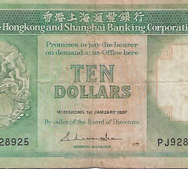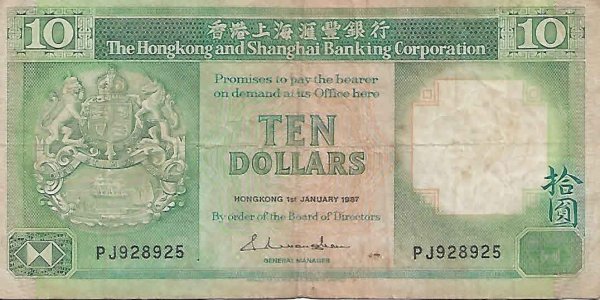 Hong Kong – 10 $ 1987 vf- currency note