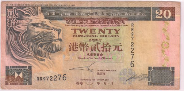 Hong Kong – 20 dollars 2001 vf currency note