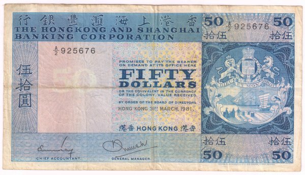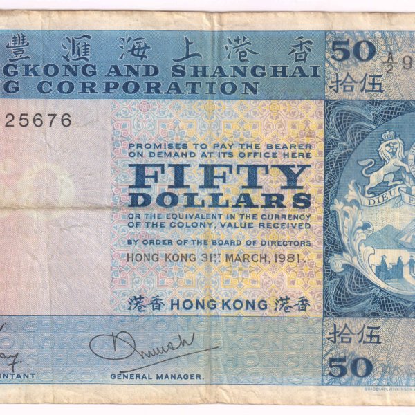 Hong Kong – 50 dollars1981 vf currency note
