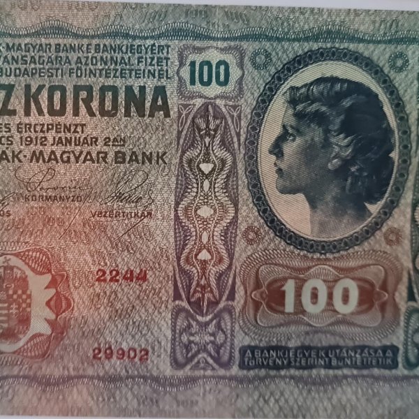 Hungary German occupied – 100 kroner 1912 scarce vf currency note