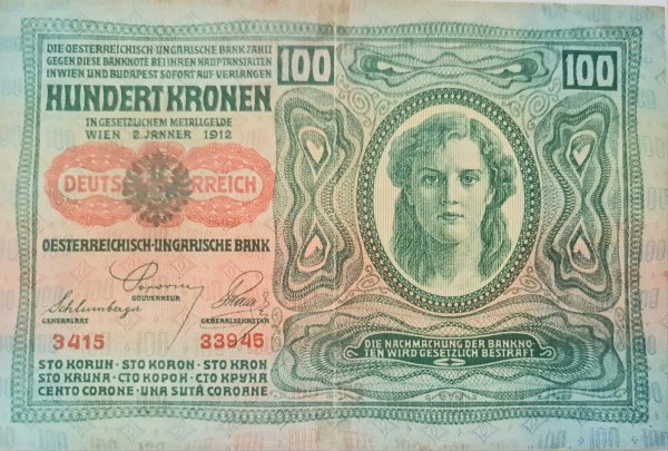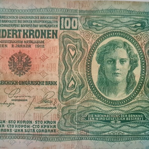 Austro Hungary / German occupation – 100 kroner 1912 scarce vf currency note