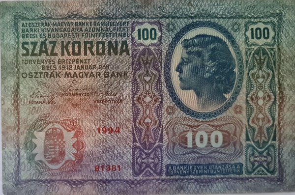 Hungary Monarchy – 100 kroner 1912 scarce vf currency note