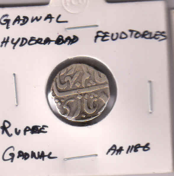 Gadwal Hyderabad feudatories ,rupee Ah1186 scarce silver coin