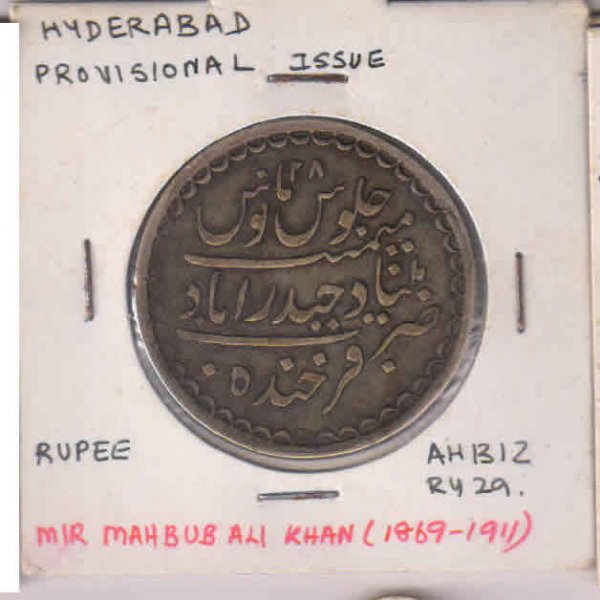 Hyderabad – rupee Mir Mahbub ali khan 1869 – 1911 , ah 1312 silver coin H10