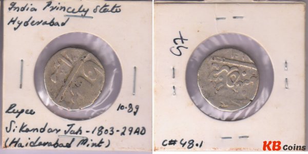 Hyderabad – Rupee, Sikhandar Jah 1803 – 29 Ad Hyderabad mint silver coin g7