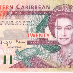 Montserrat – East Caribbean – 20 dollars 1994 vf currency note w/ pen mark