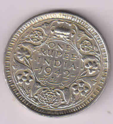 India British G VI rupee 1942 , 11.66 gms 0.5 silver coin