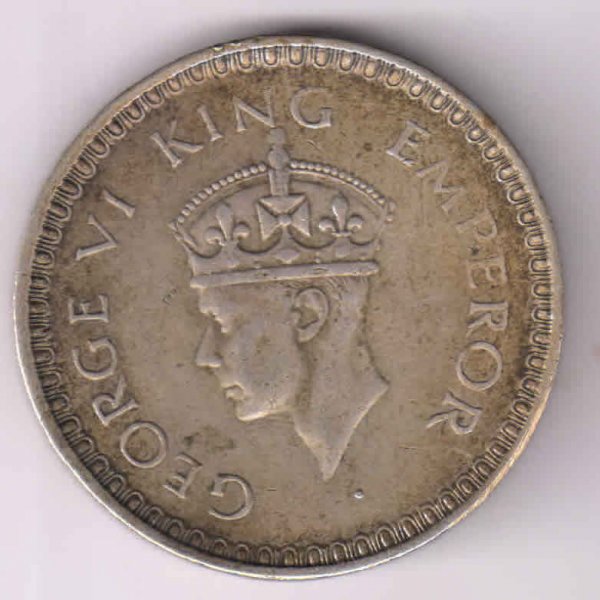 India British G VI rupee 1944 B , 11.66 gms 0.5 silver coin