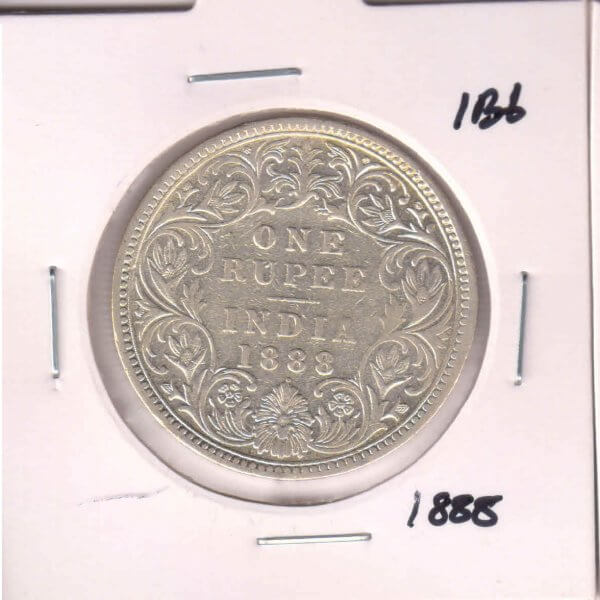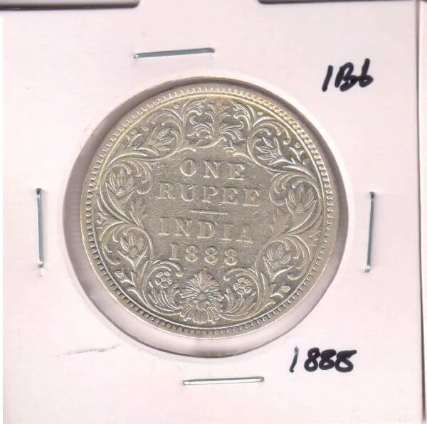 Br. India – VQ rupee 1862 + 4 dots = 1866 1st flower silver coin B1A
