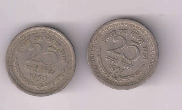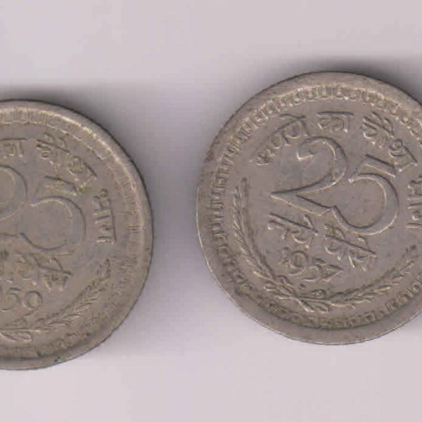 India Paisa 25 paisa 1957 , 1959 two different coins