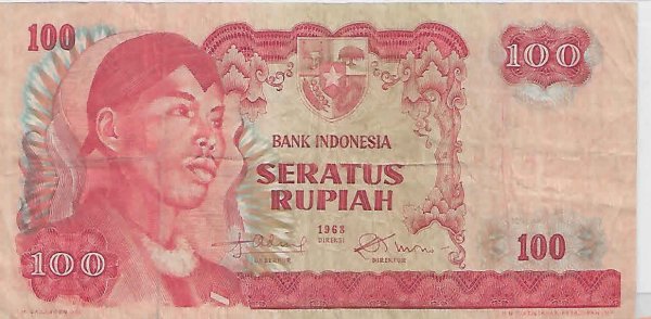 Indonesia 100 rupiah 1965 vf currency note
