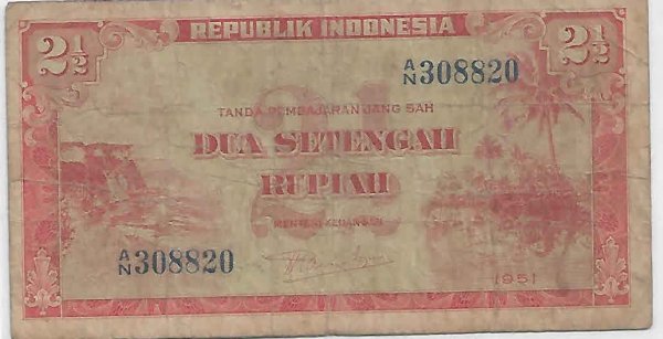 Indonesia – 2.5 rupiah 1951 vf – currency note