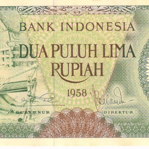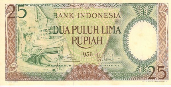 Indonesia 25 rupiah 1958 unc currency note quantity