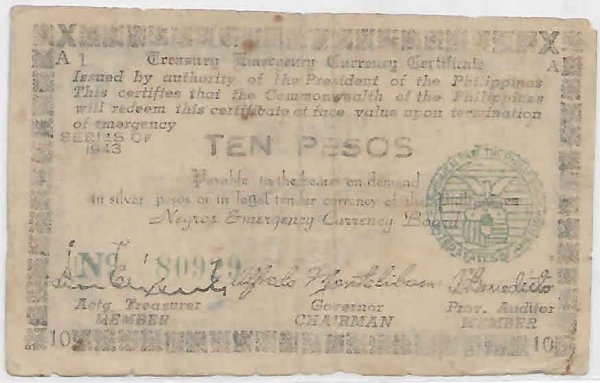 Negros / PHILIPPINES 10 pesos 1944 vf currency note