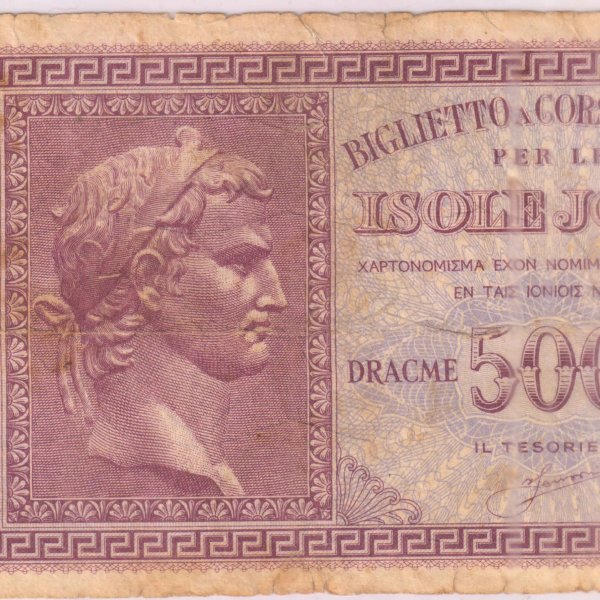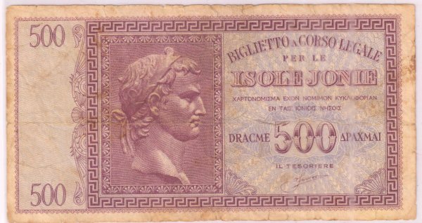 Ionian Islands United States / Greece , 1941 ,500 Dracme Italian occupation scarce currency note