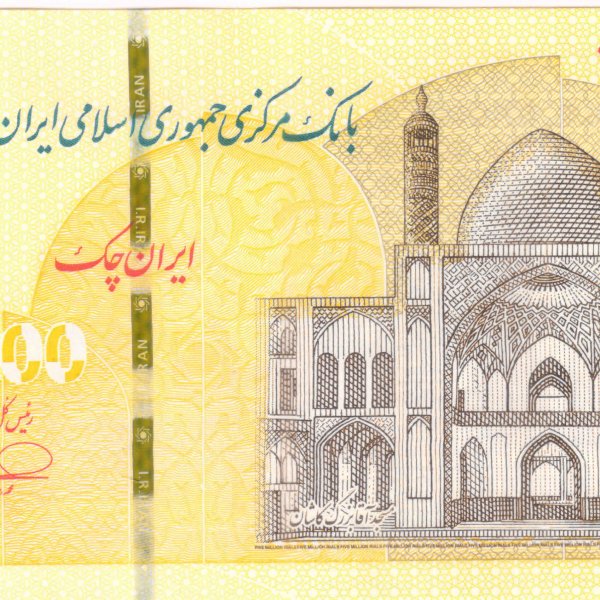 Iran – 5,000,000 rials ( 5 million) 2008 – 23 unc cheque currency note