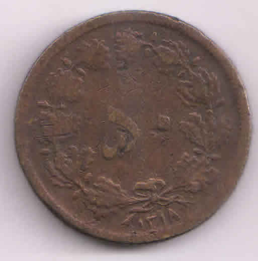 Iran ( Persia) kingdom 50 riyal AH1318 copper coin
