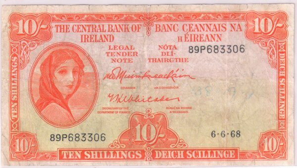 Ireland – 10 shillings 1968 scarce currency note