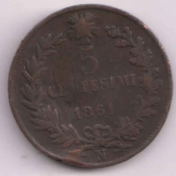 Italy kingdom 5 centesimo 1861 copper coin coin