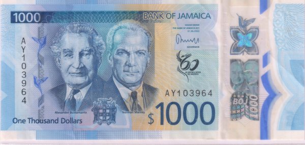 Jamaica - 1000 $ 2022 vf polymer currency W/ fold quantity