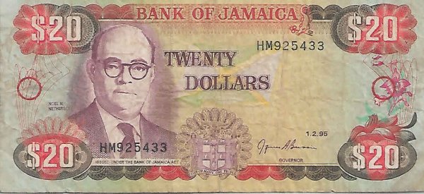 Jamaica – 20 dollars 1981 and 1985 two different vf currency notes