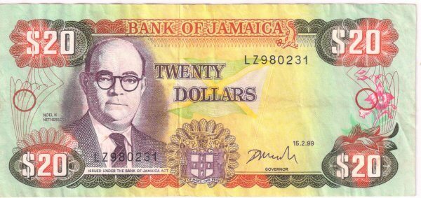 Jamaica- 20 dollars 1996 – 99 vf currency note