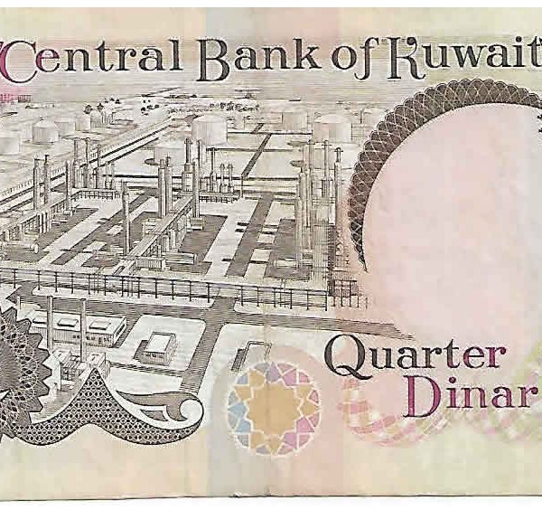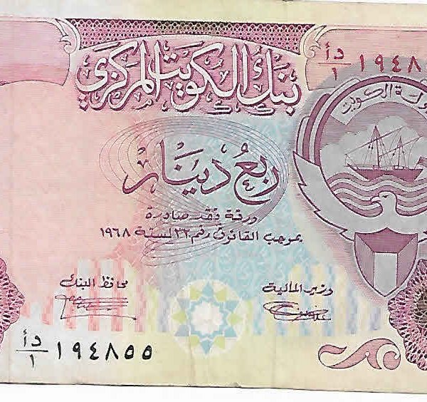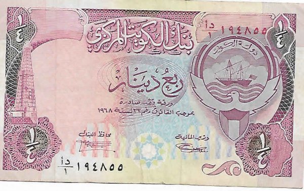 Kuwait- 1/4 dinars 1968 used currency note