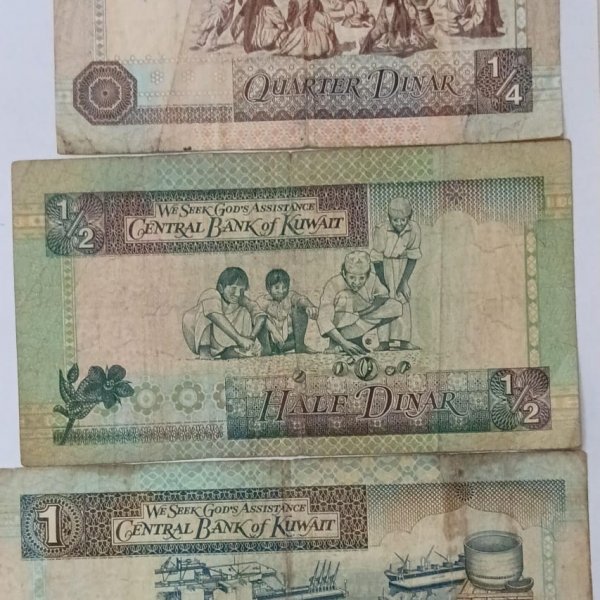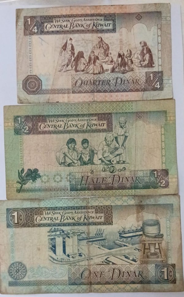 Kuwait – 1/4 . 1/2 & 1 dinar set of 3 , 1972 used currency notes