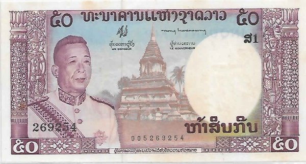 Laos - 50 kip 1963 xf currency note quantity