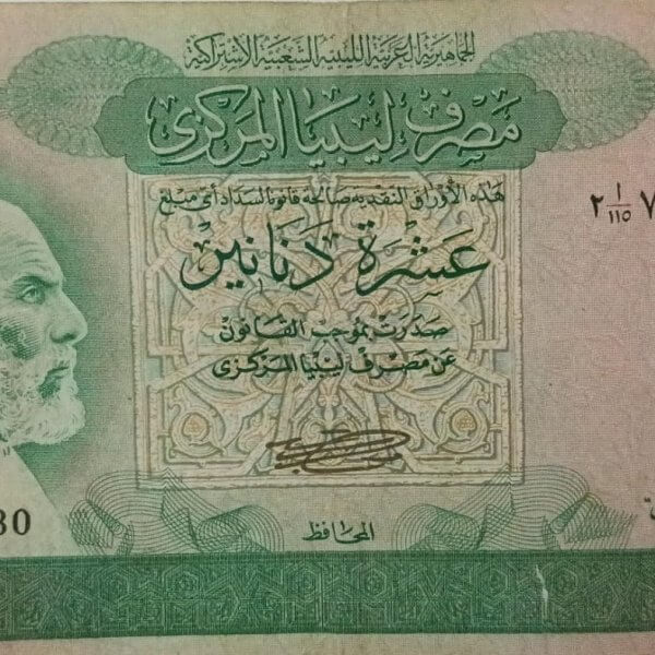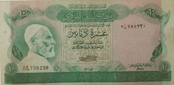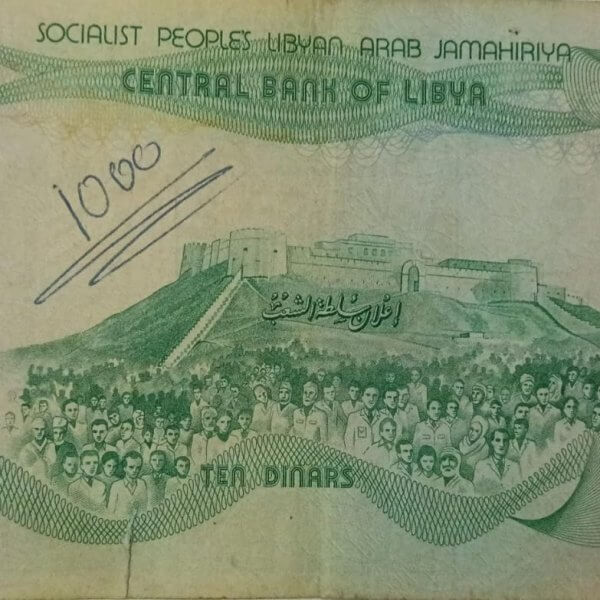 Libya – 10 dinars 1980 vf currency Note ( large note, torn)